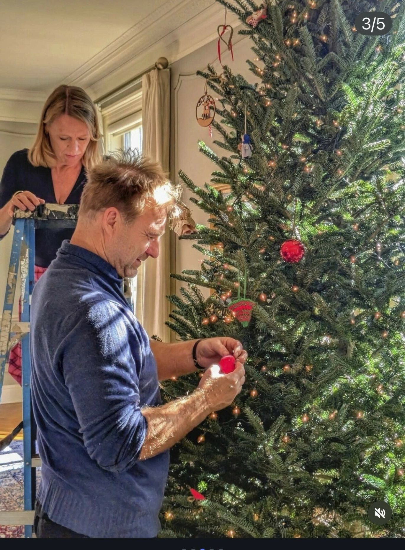 – Vi pynter hele huset akkurat nå. Det er lys utenfor, blomster overalt og et svært juletre i inngangen, forklarer Anniken, som har fått hjelp av kunstneren Vebjørn Sand til å pynte treet.