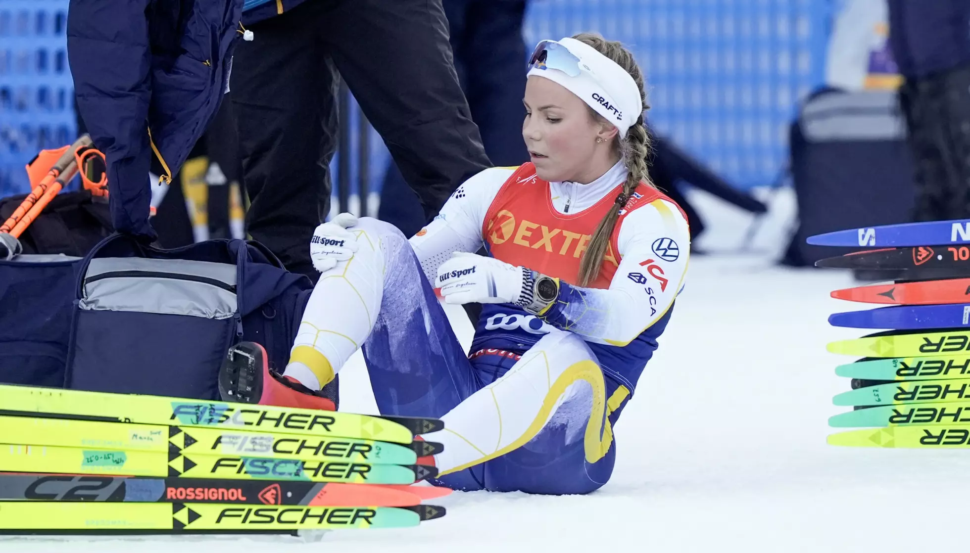 SKUFFET: Svenske Johanna Hagström i mål etter en svak 33. plass på den svenske fiaskodagen i Toblach. Foto: Terje Pedersen / NTB