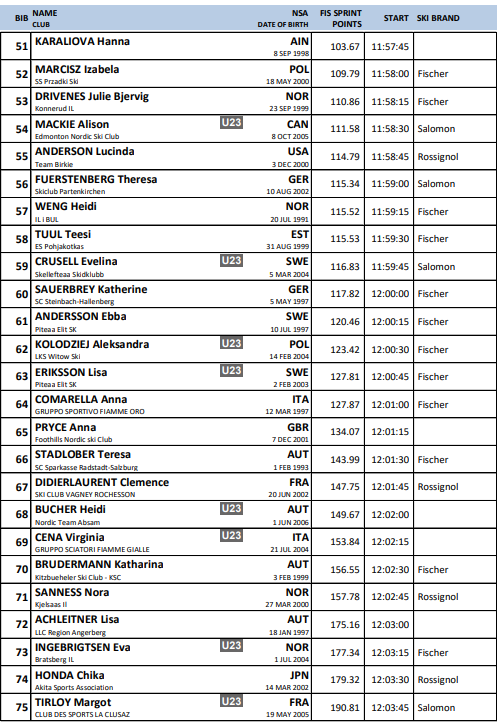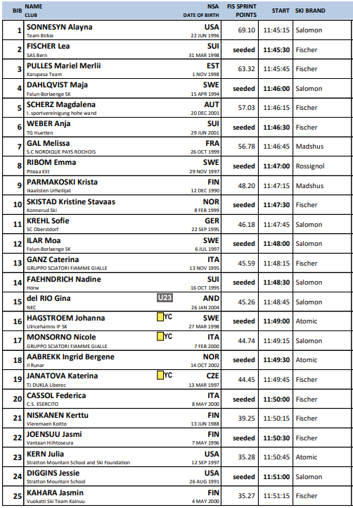 - Kl 15.30: 15 km fellesstart fri kvinner «Monsterbakken»