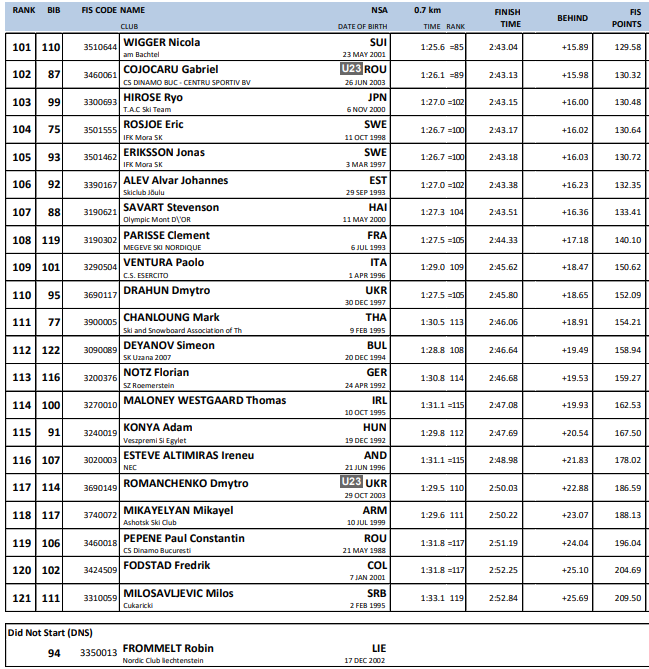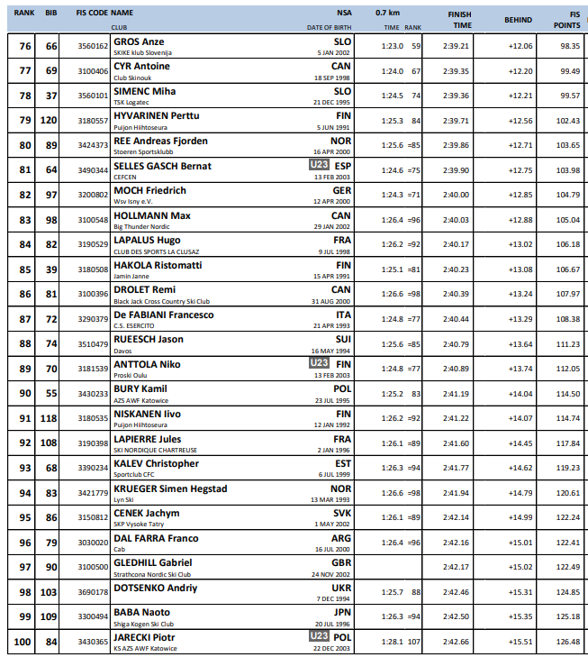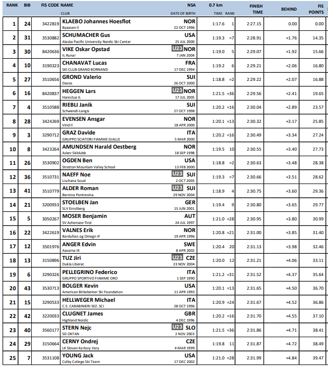 Sammenlagtstilling Tour de Ski etter 1. etappe: