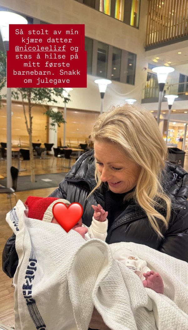 – Så stolt av min kjære datter, og så stas å få hilse på mitt første barnebarn. Snakk om julegave.