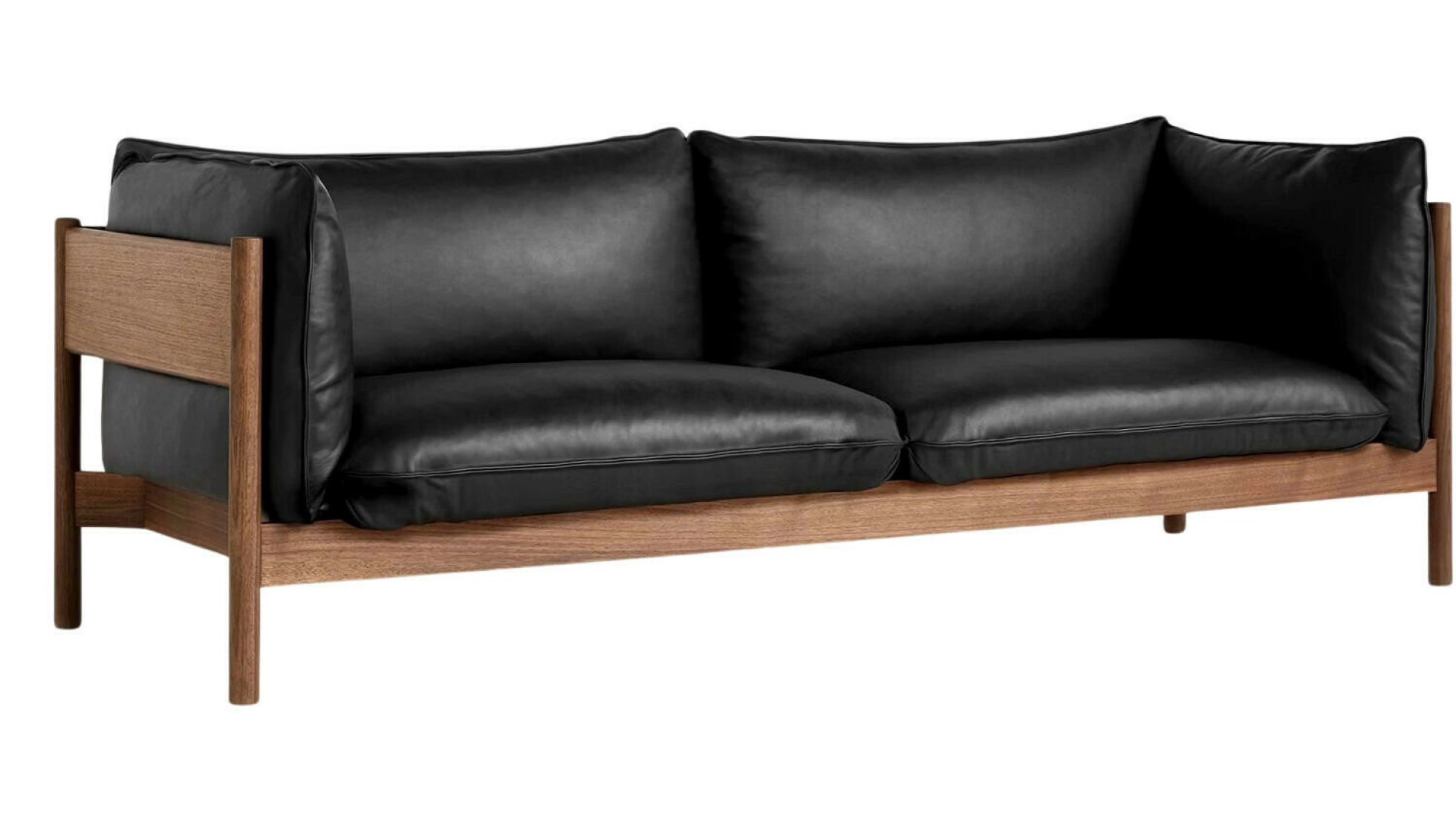«Arbour» 3-seter sofa i svart skinn og valnøtt