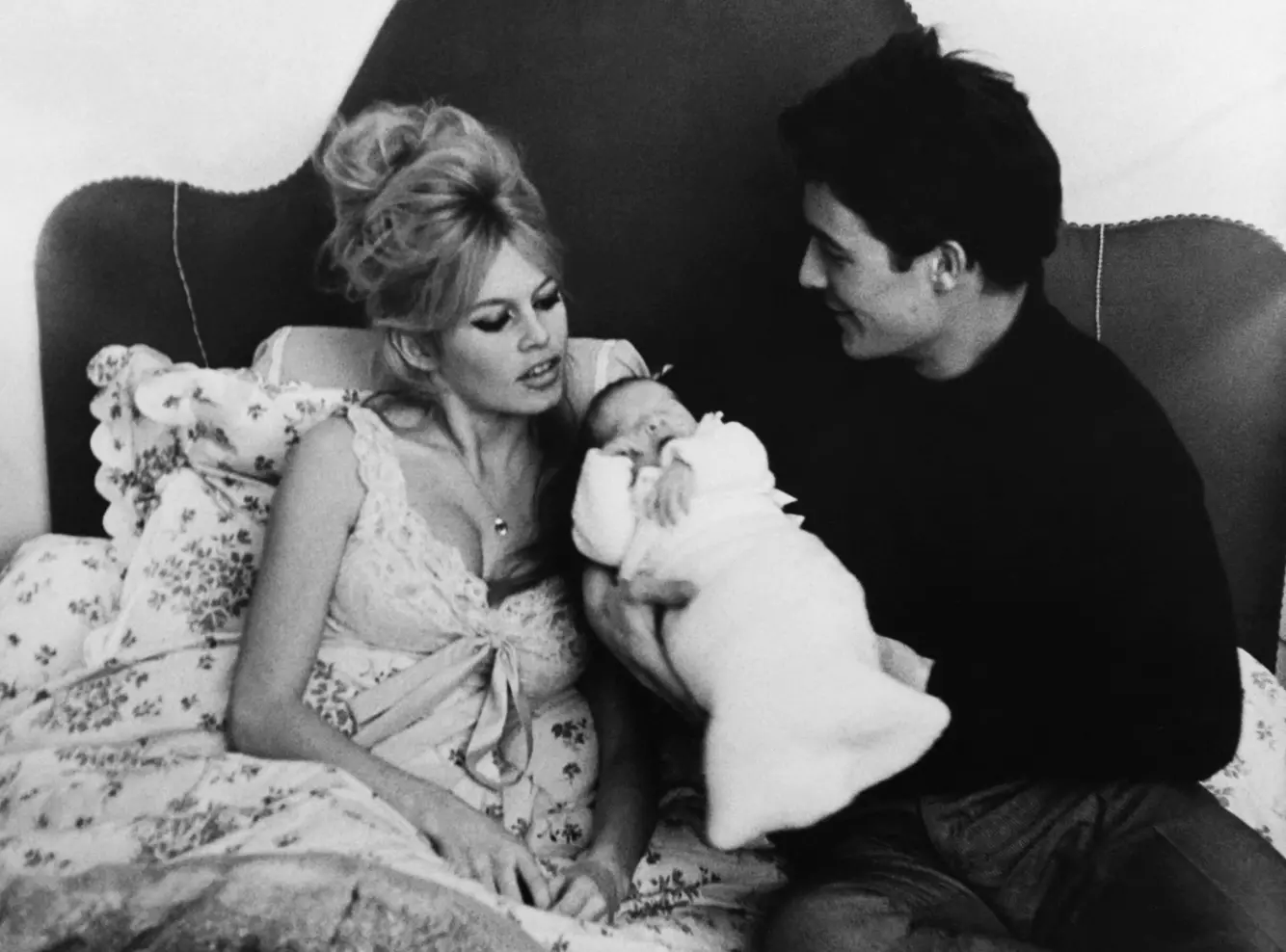 HJEMMEFØDSEL: Brigitte Bardot fikk sitt eneste barn, sønnen Nicolas-Jacques Charrier, med sin daværende ektemann Jacques Charrier i 1960. Foto: AFP