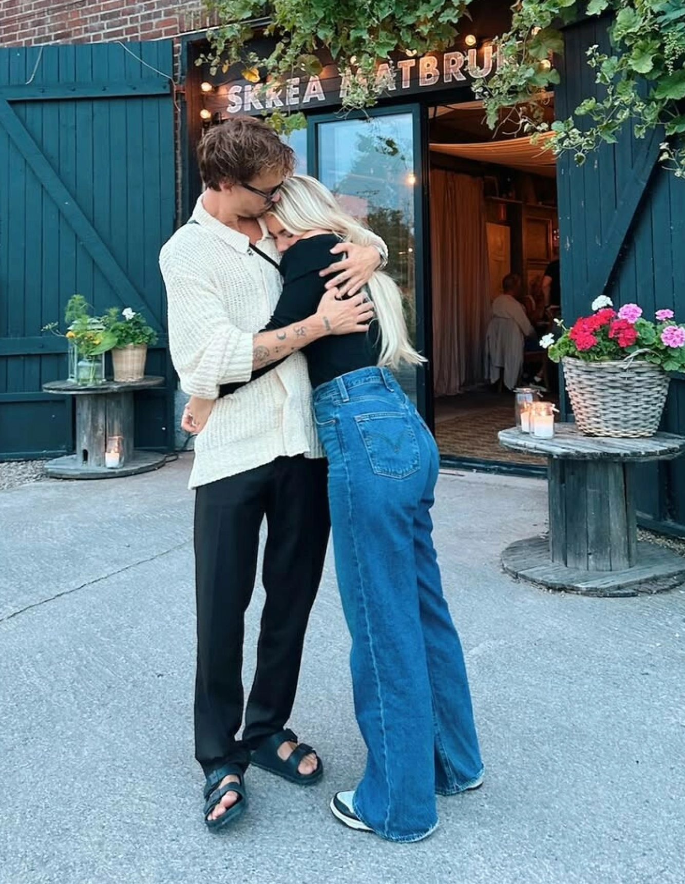 Her kan hun sees i en het omfavnelse med Melodifestivalen-deltaker Kristoffer Greczula (33).