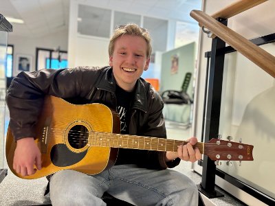Sammen med en gjeng unge musikere, og et par proffe, pugger han riff og vokal mot storsatsingen i Bølgen.