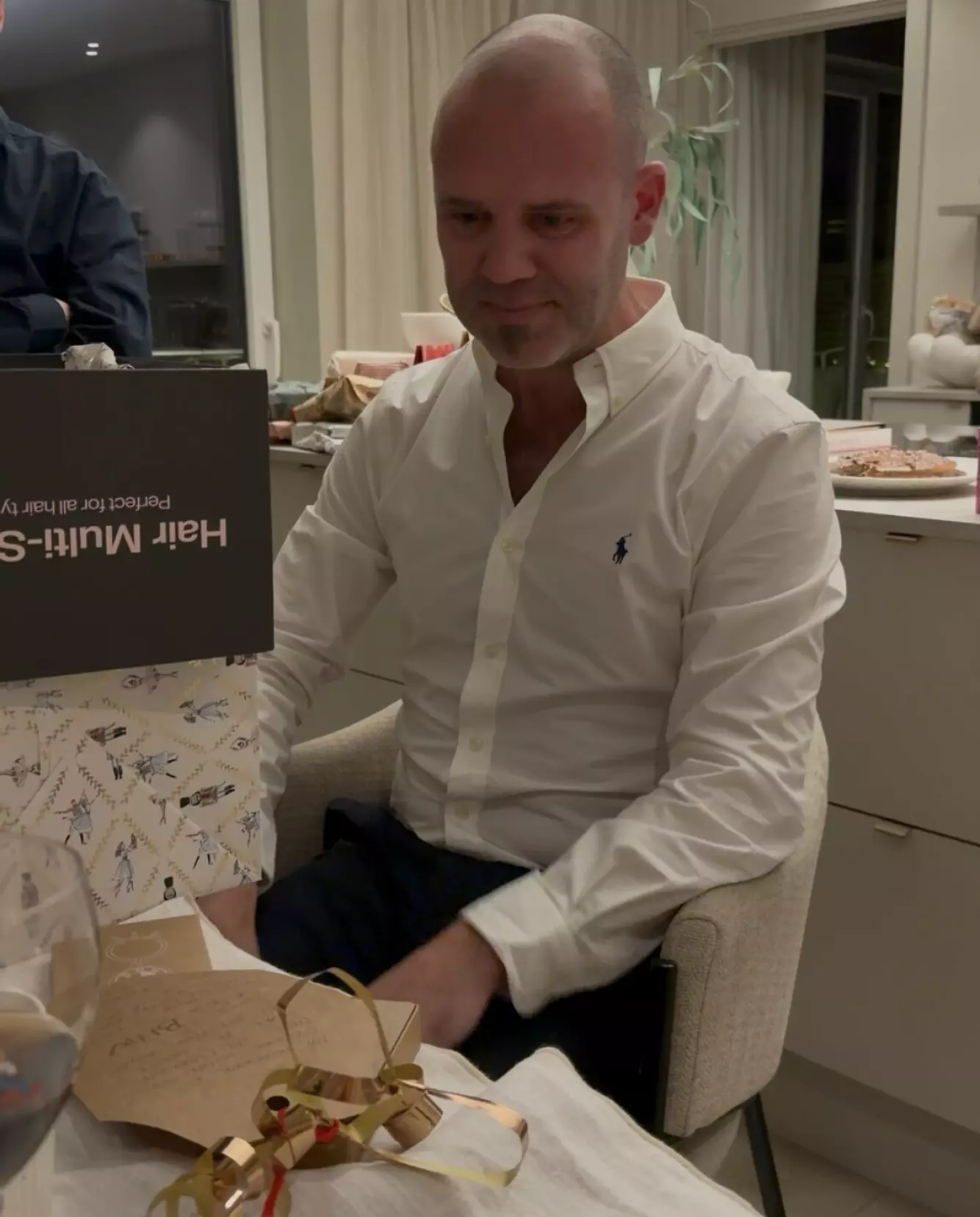 TÅRER PÅ JULAFTEN: Øivind ble rørt til tårer da han oppdaget hva kona Therese hadde pakket inn under treet. Foto: Privat