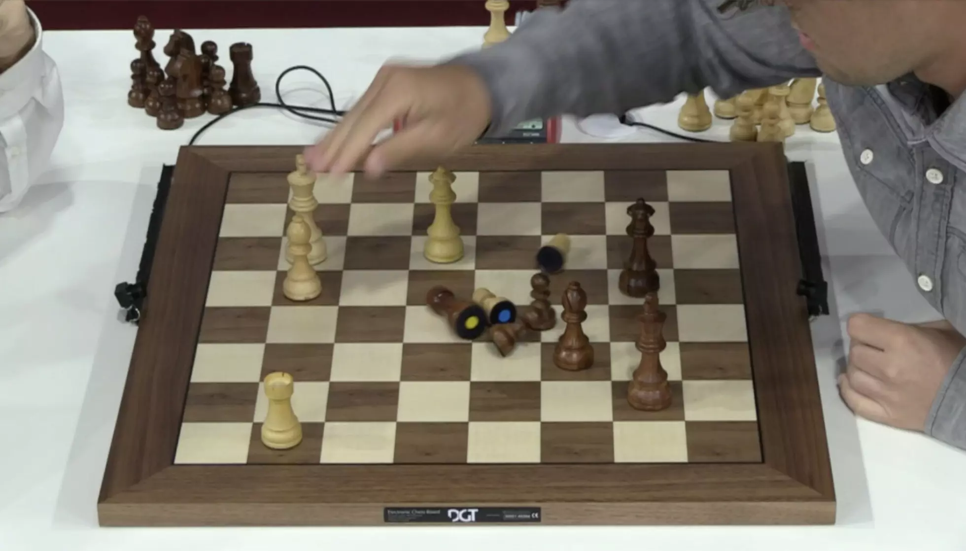 Resultatet var på det tidspunktet kritisk med tanke på å nå sluttspillet. Carlsen tapte også et parti i går grunnet at en brikke falt på gulvet: