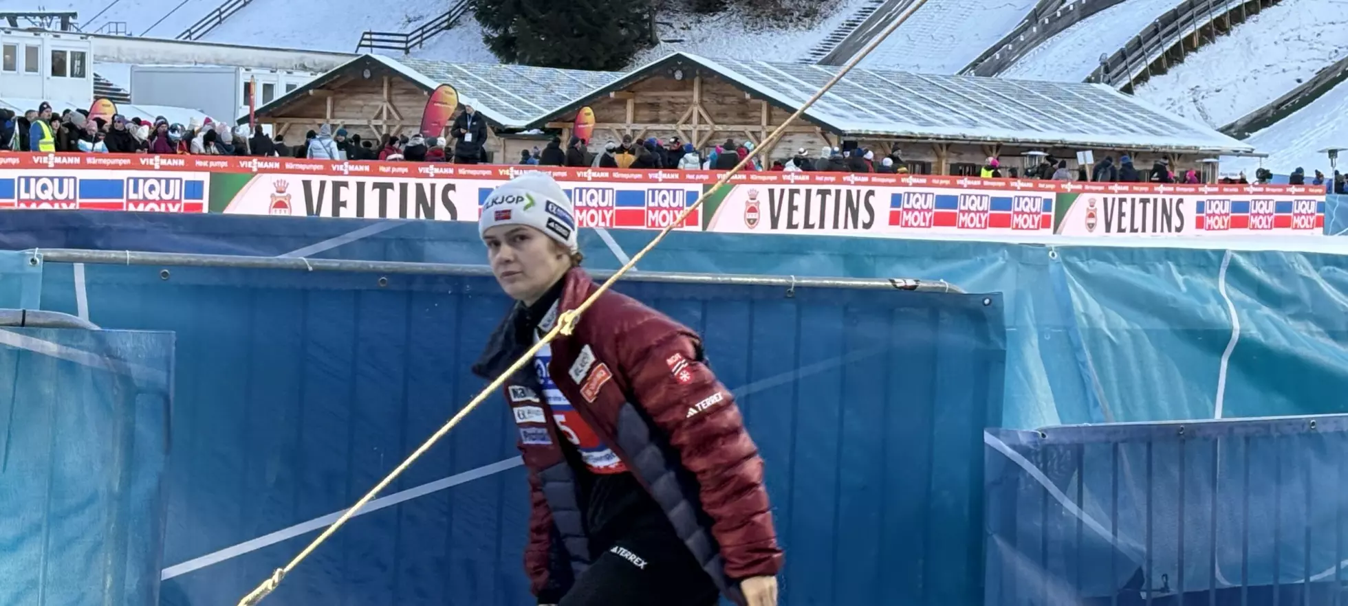SETTER FYR: Janteloppet på Hafjell skrotet kvinneklassen på 40 kilometer. Nå fyrer landslagsstjerne Astrid Øyre Slind løs, og brenner startnummeret. Video: Instagram/@astridoslind
