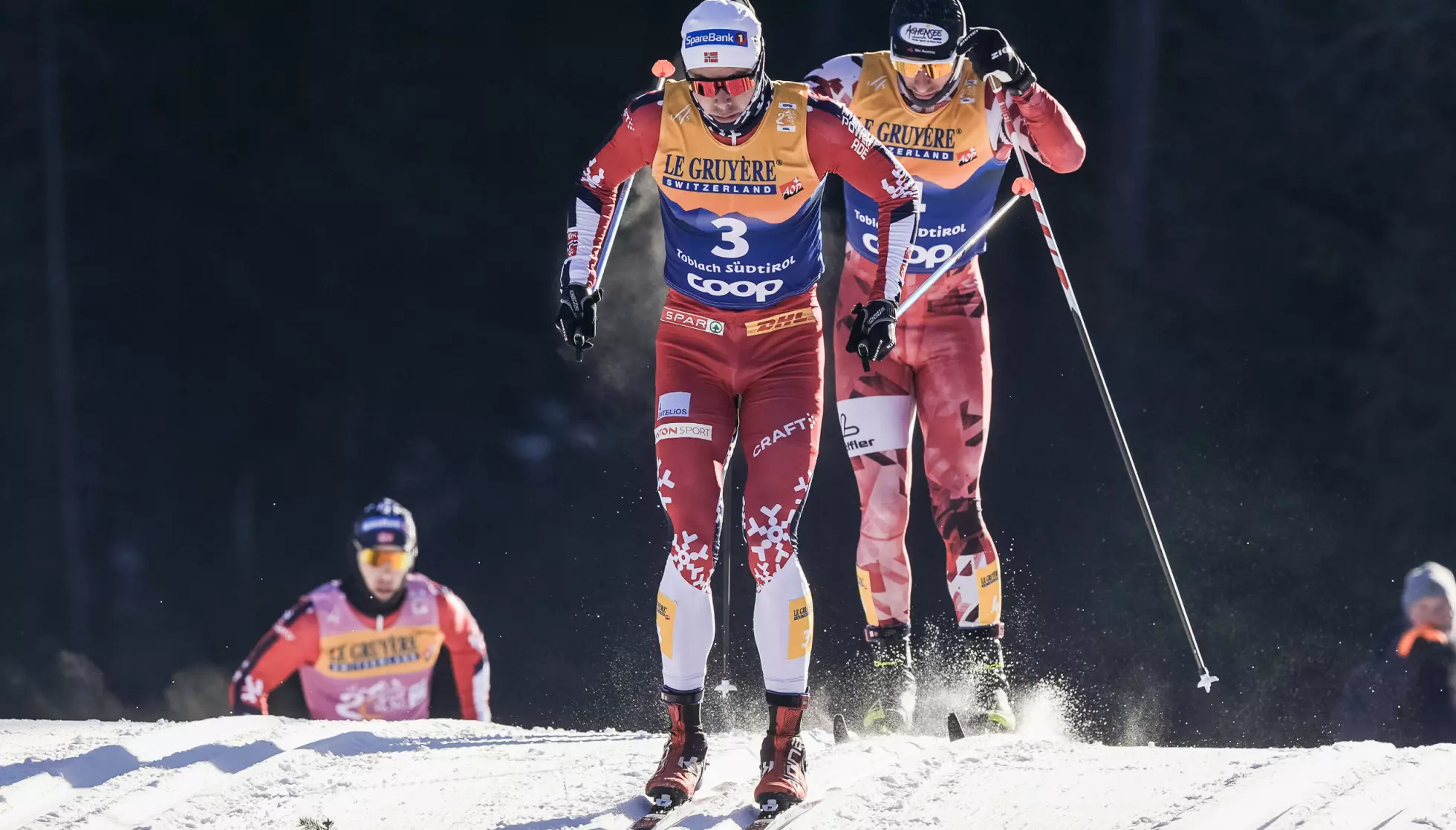 3. Edvin Anger, Federico Pellegrino, Emil Iversen, Gus Schumacher, +1. minutt