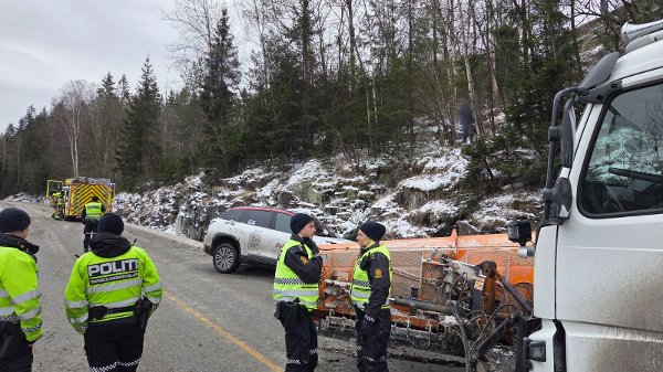 «Vi er på vei til en møteulykke mellom en taxi og en brøytebil på Gamle Ringeriksvei. En person er skadd, uvisst alvorlighet. Meldes også om trafikale problemer på stedet», meldte politiet klokken 11.37: