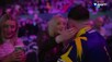 Den prestasjonen måtte naturligvis feires med kjæresten Faith Millar. Det engelske supertalentet Littler fikk et kyss av kjæresten blant publikum etter å ha radet opp seks strake settseire i semifinalen.