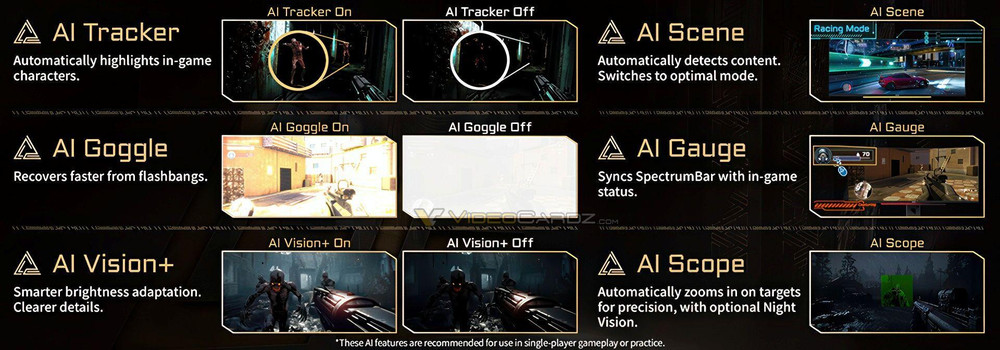 MSI lovar blant anna ein funksjon som kan zoome inn på fiendar, automatiske lysinnstillingar som gjer det enklare å sjå i spel om du blir treft av ein «flashbang»-granat og KI-sporing som automatisk lyser opp figurar i spel.