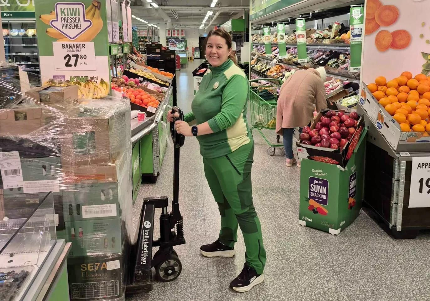 FYLLER OPP: Prisjegerne møtte på Rose Linn Laugen på Kiwi i Haugesund, som var i full gang med å kjøre ut varer i butikken. Foto: Truls Lea