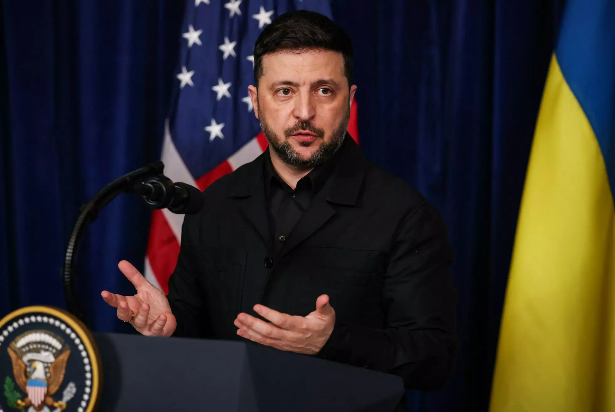 En journalist fulgte opp med spørsmål om Zelenskyjs benektelse av angrepet.
