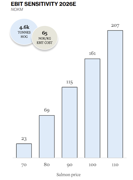 Avhengig av oppnådd laksepris for året, serverer selskapet i en dagsfersk driftsoppdatering sensitiviteter på forventet driftsresultat (EBIT).