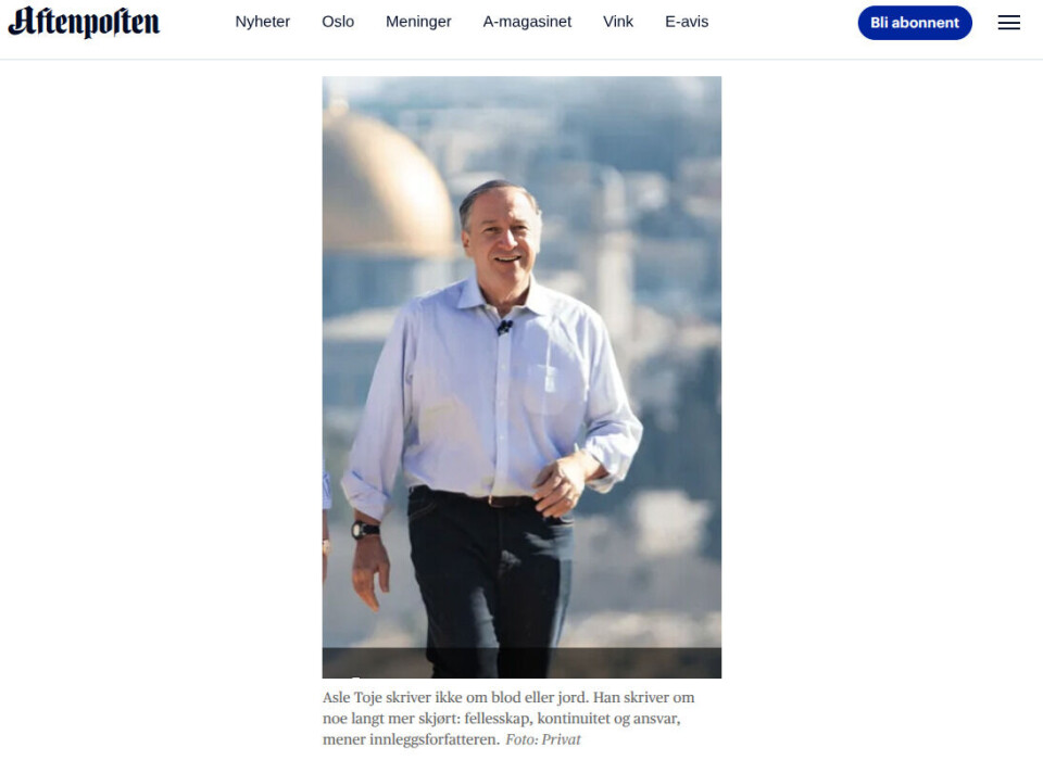 Innleggsforfatteren opplyser å være en jødisk forretningsmann, og kommenterer i innlegget debatten som har fulgt et nylig innlegg fra Asle Toje.