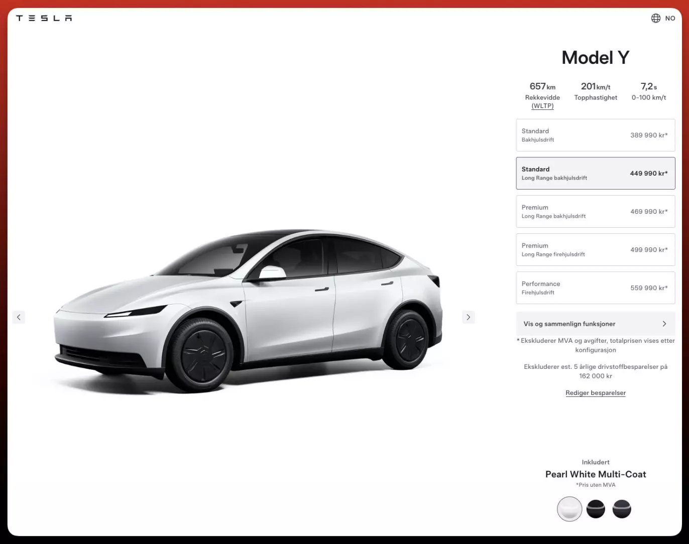 Elbil24 var så tidlig ute med denne saken at Tesla ikke hadde rukket å gjøre alle prisjusteringer i konfiguratoren. Det er korrigert nå.