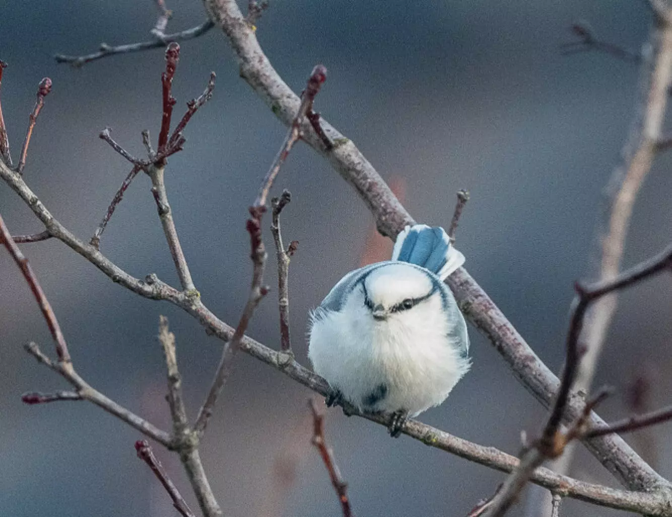 PÅ VILLE VEIER: Denne sjeldne asurmeisen er nå mutters alene i Ørland kommune. Her blir han nok til været blir mildere, tror Audun Eriksen, fagsjef for natur i kommunen. Foto: Audun Eriksen