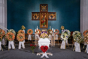 EN SISTE HILSEN: «Til mamma» sto det på den vakre bårebuketten fra Nicolas og hans norske familie. Foto: NTB