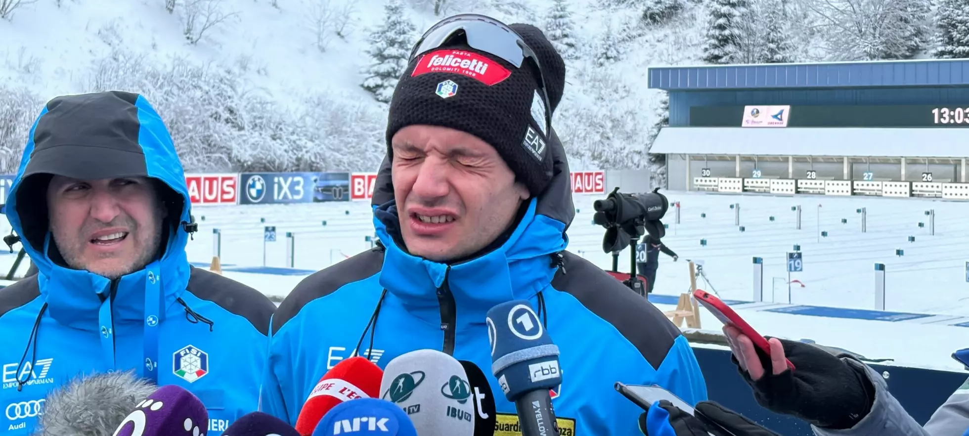 – Denne var for Sivert, sa italieneren til pallkollega Johannes Dale-Skjevdal etter målpassering ifølge X-kontoen til Det internasjonale skiskytterforbundet (IBU).