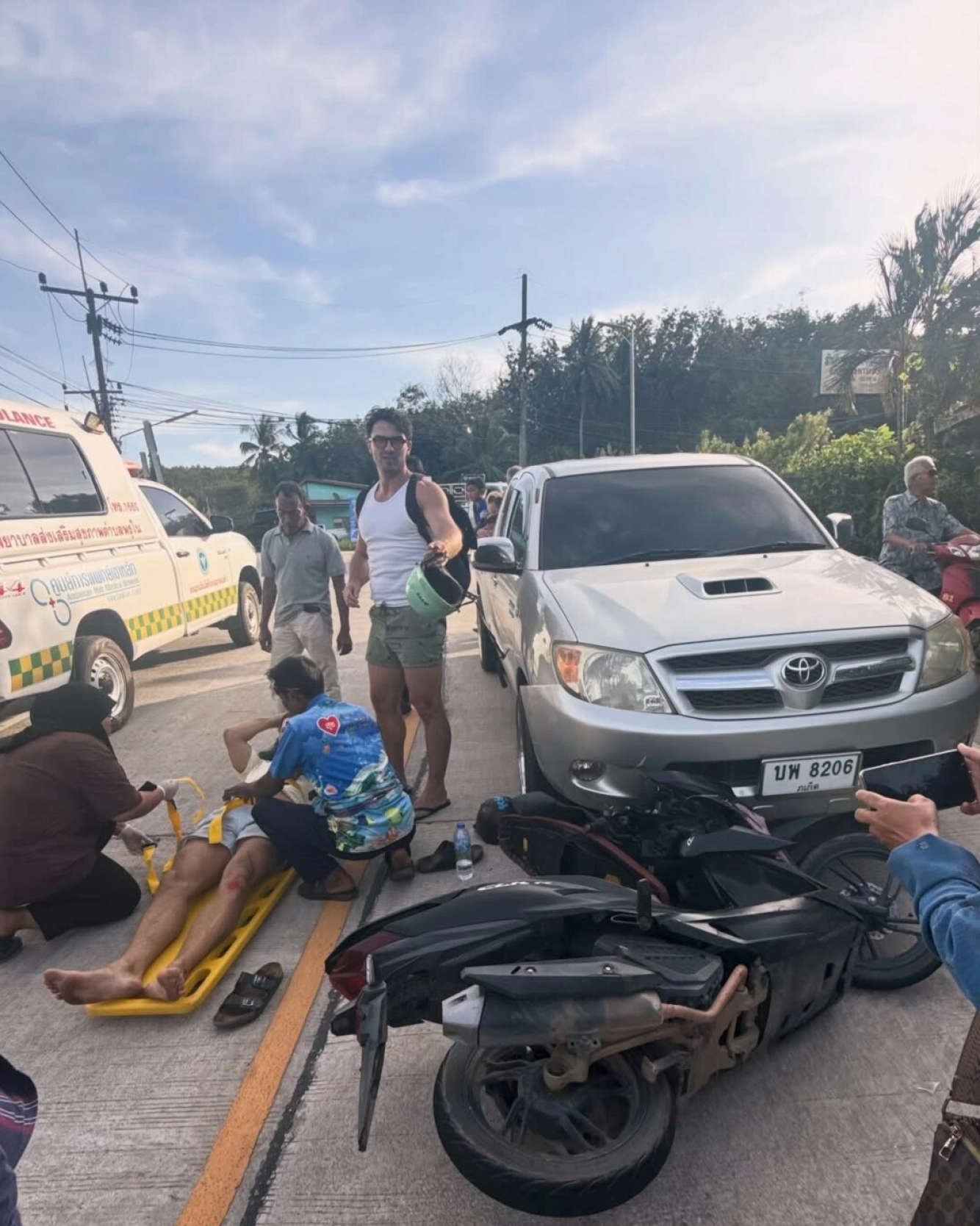 Etter ulykken ble han først fraktet til et mindre sykehus på øya, før han måtte reise videre til et større i Phuket.
