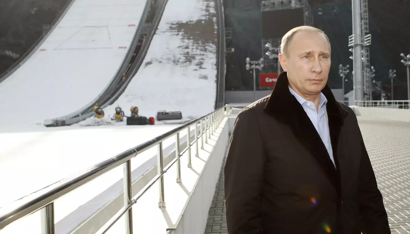 HOPPINTERESSERT: Vladimir Putin inspiserte hoppbakkene i Sotsji i 2013. Foto: NTB