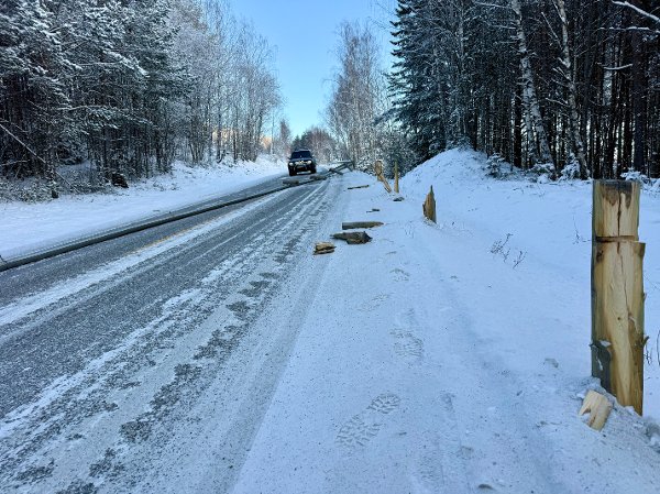 – Noen eller noe har dradd med seg rundt 100 meter med autovern, som ligger ut i vegbanen, forklarte trafikkoperatør ved vegtrafikksentralen, Vegard Halvorsen.