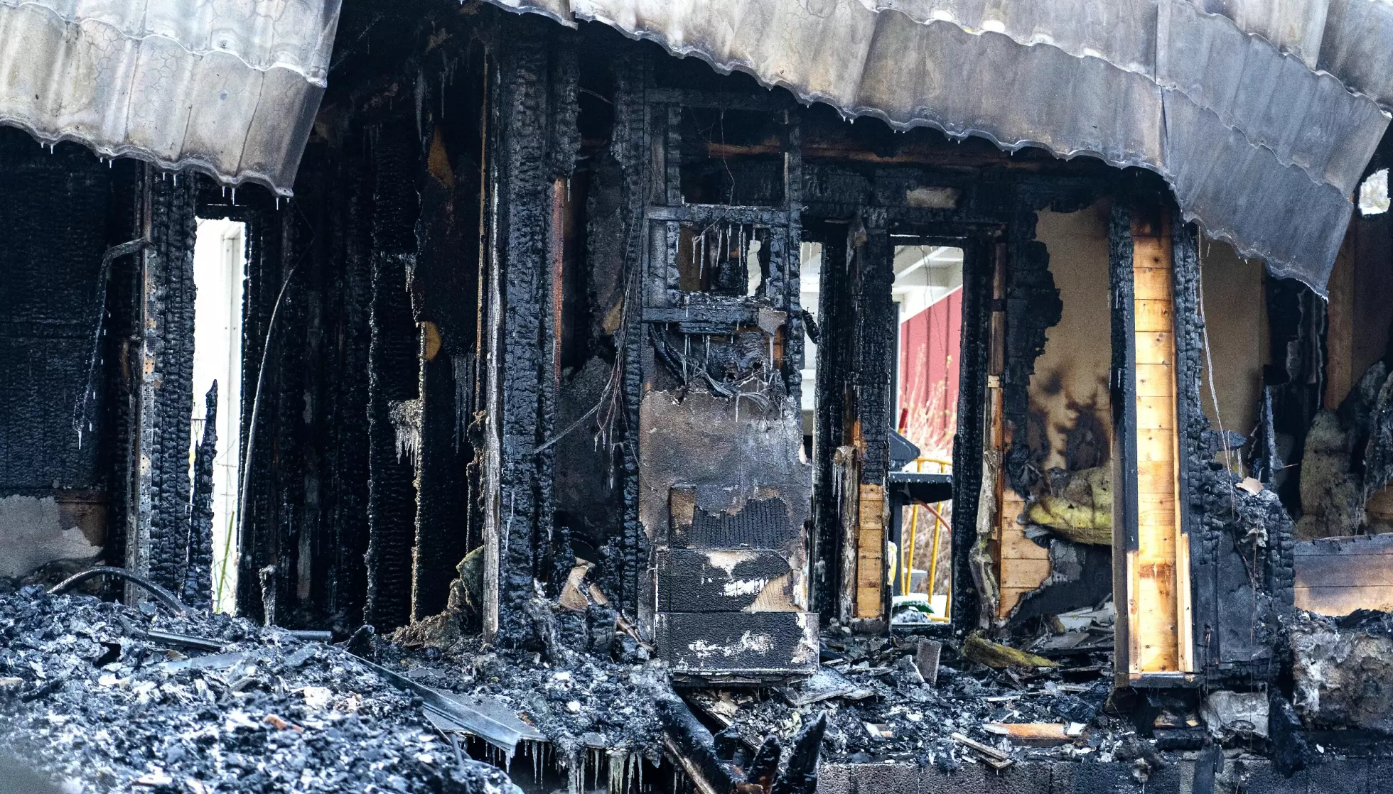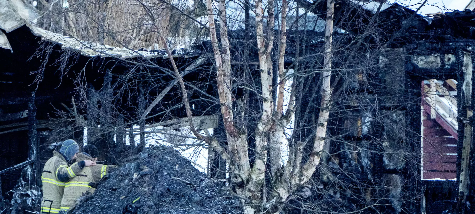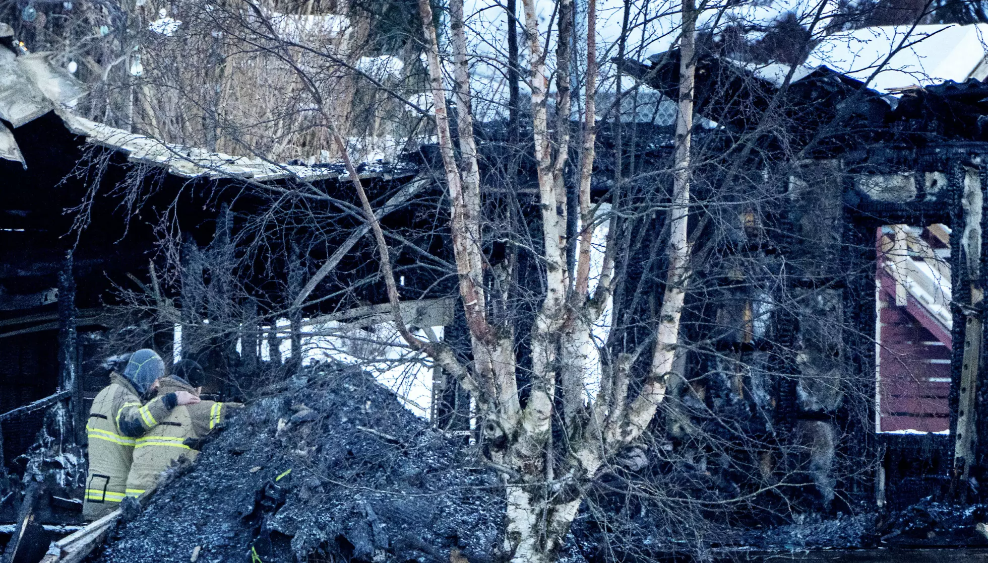 I SORG: Brannstedet i Verdal der brannen krevde to brannmenns liv. Foto: Hans Arne Vedlog / Dagbladet