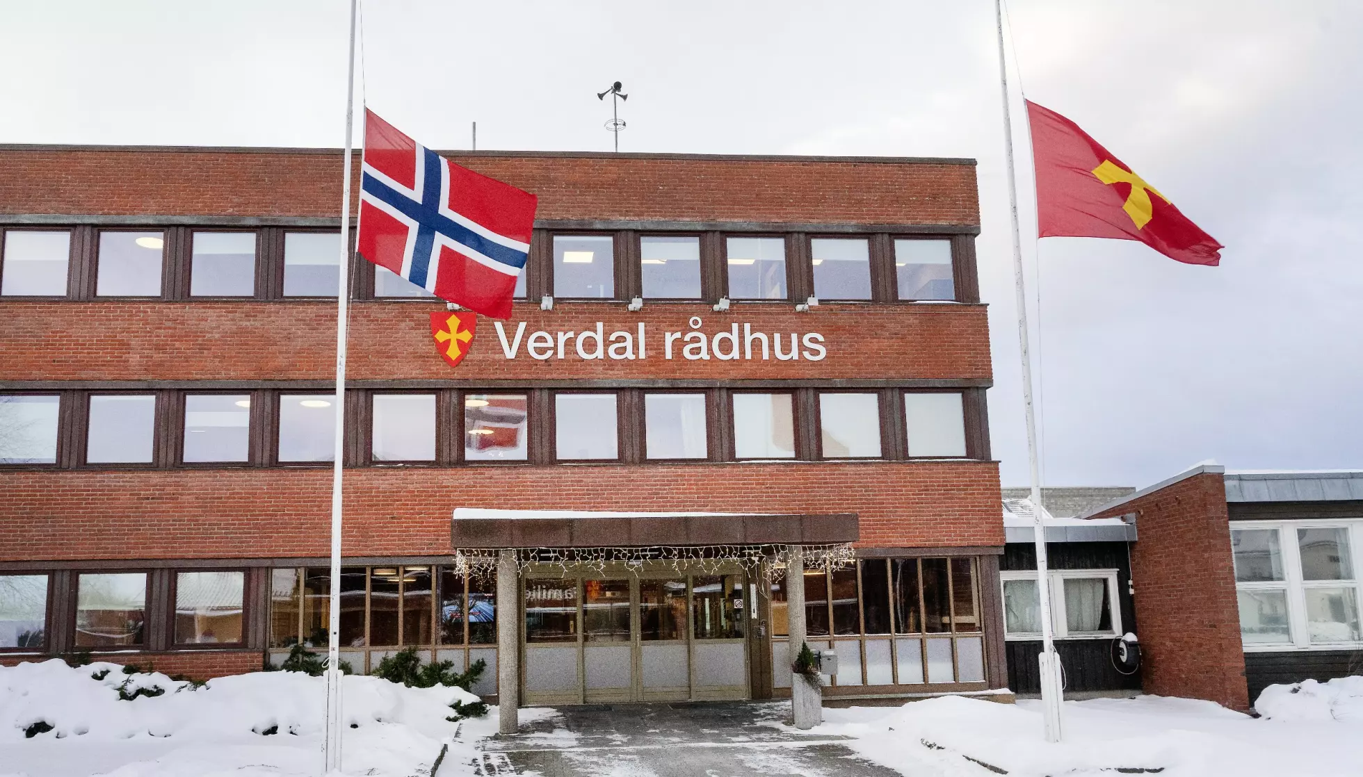 HALV STANG: Det ble flagget på halv stang ved rådhuset etter branntragedien i Verdal som krevde livet til to brannmenn. Foto: Hans Arne Vedlog / Dagbladet