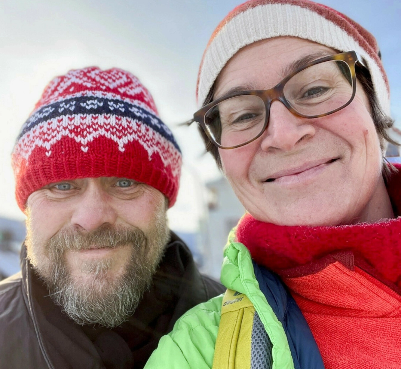 UT PÅ TUR: Ulf og kona Hanne Jonassen ute i vinterkulda. Etter at han har gått av som toppsjef blir det kanskje mer tid sammen? – Det har hun ingen tro på, ler eks-redaktøren. Foto: Privat