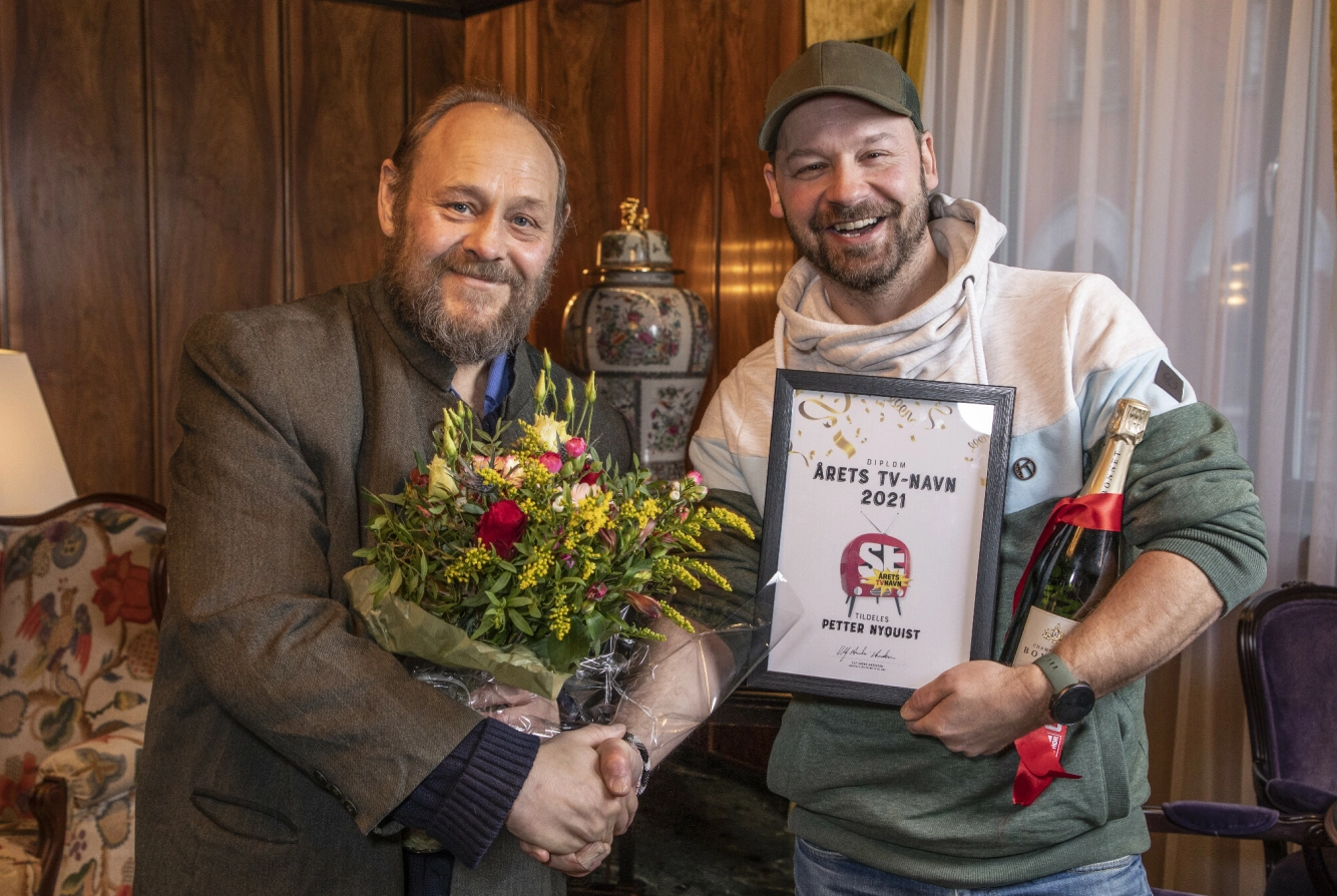FORNØYDE: I 2021 overrakte Ulf Se og Hørs pris «Årets TV-navn» til Petter Nyquist for TV-dokumentarserien «Petter Uteligger». Foto: Se og Hør