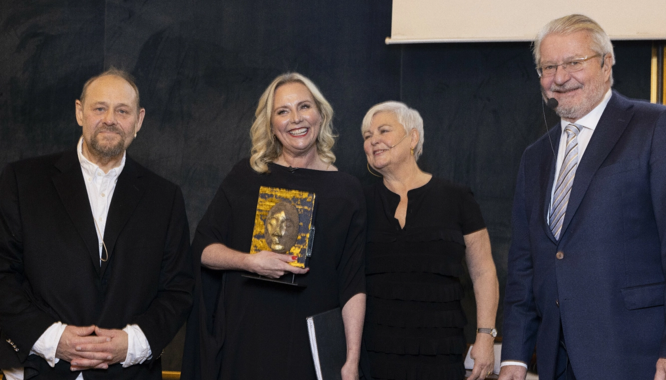 ÆRESPRIS: Avgått Se og Hør-sjef Ulf (t.v.) sammen med Linn Skåber, Ellen Horn og Fabian Stang. Sammen med de to sistnevnte var han i juryen da Skåber fikk Wenche Foss ærespris i 2022. Foto: Espen Solli.