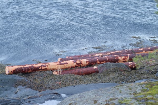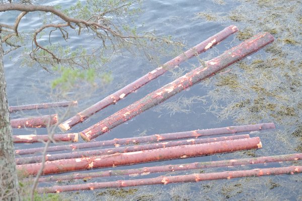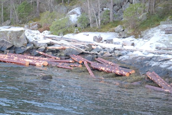 Mykje av tømmeret har drive inn i viker i nærleiken av tømmerkaien.