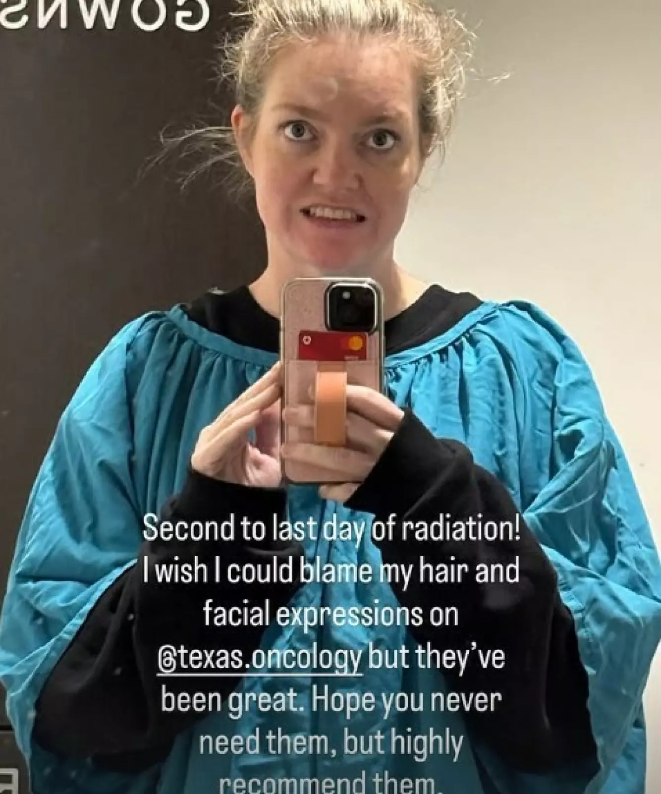 «Nest siste dag med stråling», skrev hun i et innlegg delt på Instagram Story, og tagget en kreftklinikk i Texas.