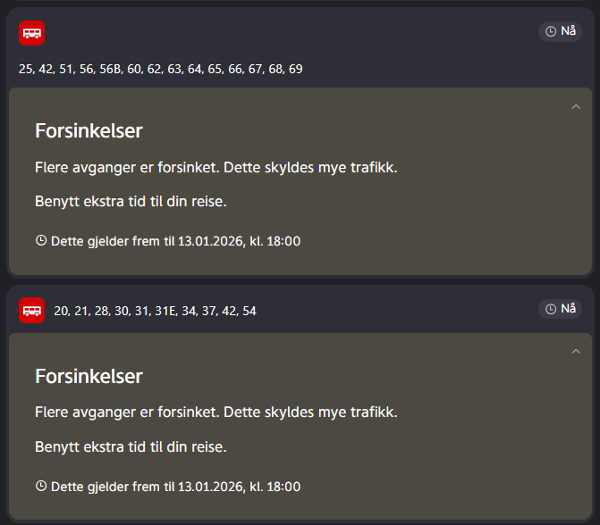 Dette gjelder blant annet disse busslinjene: 20, 21, 28, 30, 31, 31E, 34, 37, 42