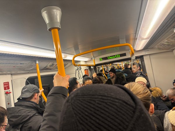 Fullt på linje 5 mot Vestli. Ikke alle fikk plass på denne avgangen.