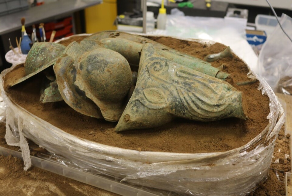 De er laget av bronse og er svært skjøre, og må stabiliseres før det kan gjøres videre undersøkelser. Forskerne avdekket også et villsvinhode som har vært på toppen av et militært banner samt flere skjoldbuer og en gjenstand av jern som ikke er identifisert enda.
