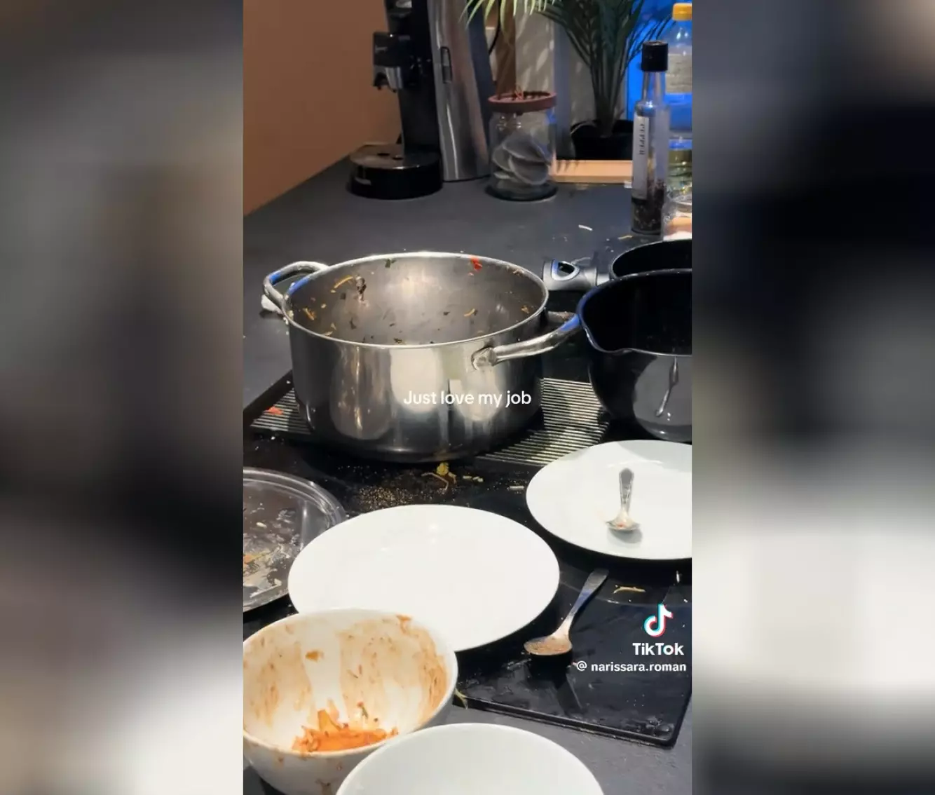 MATKAOS: Gjestene forlot komfyren full av kjeler og matrester. Foto: Skjermdump TikTok / Privat