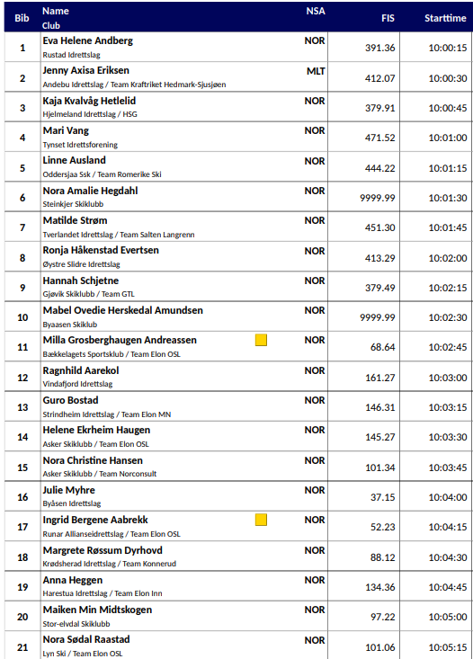 Torsdag 15. januar – 10 km intervallstart fri teknikk