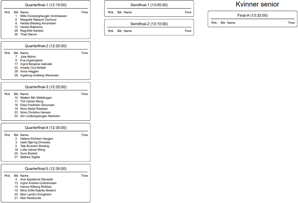 - Kl. 11.20: 3×5 km stafett kvinner (KFF)