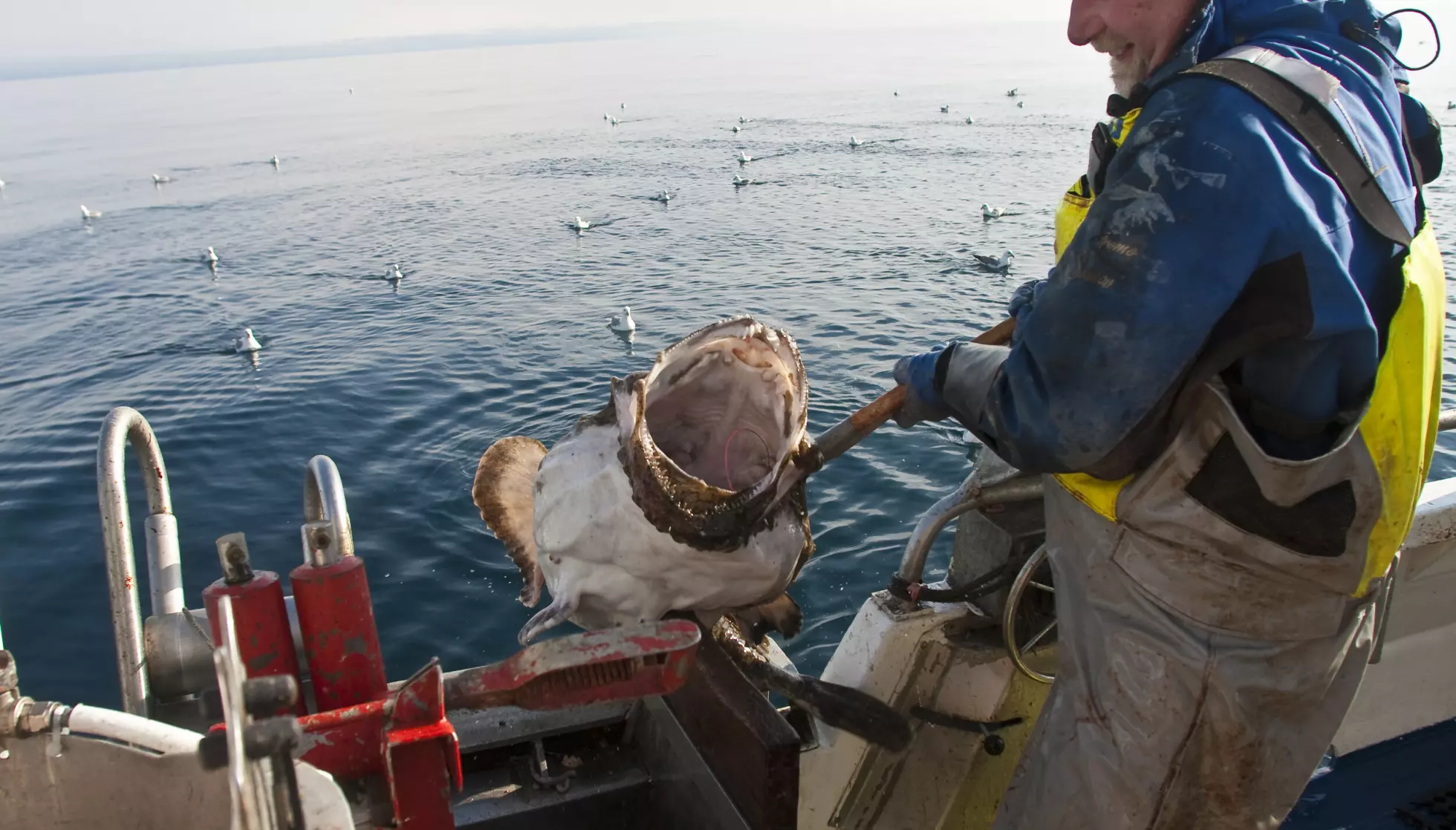 STOR i KJEFTEN: Slik ser en breiflabb ut når den blir dratt opp på kroken. Bildet er fra et fiskefelt i Vesterålen i 2009, og er ment som illustrasjon i denne saken. Foto: Jan-Morten Bjørnbakk / NTB.