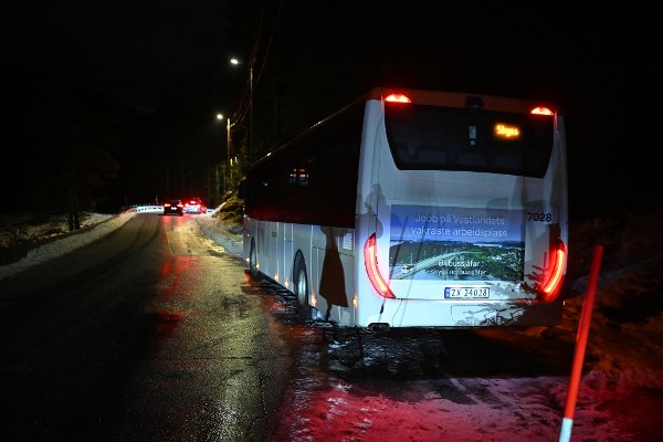 – Det er klink is. Jeg nekter faktisk å kjøre. Jeg har parkert bussen og venter på at det kommer biler som kan strø, sier bussjåføren til BA.