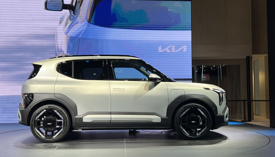 Kia EV2 ser ut som en EV9 som er vasket på altfor høy temperatur og derfor har krympet så mye at den lett lar seg parkere i trange garasjeanlegg.