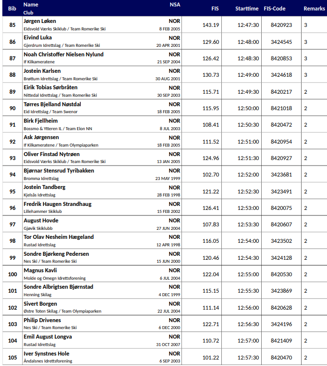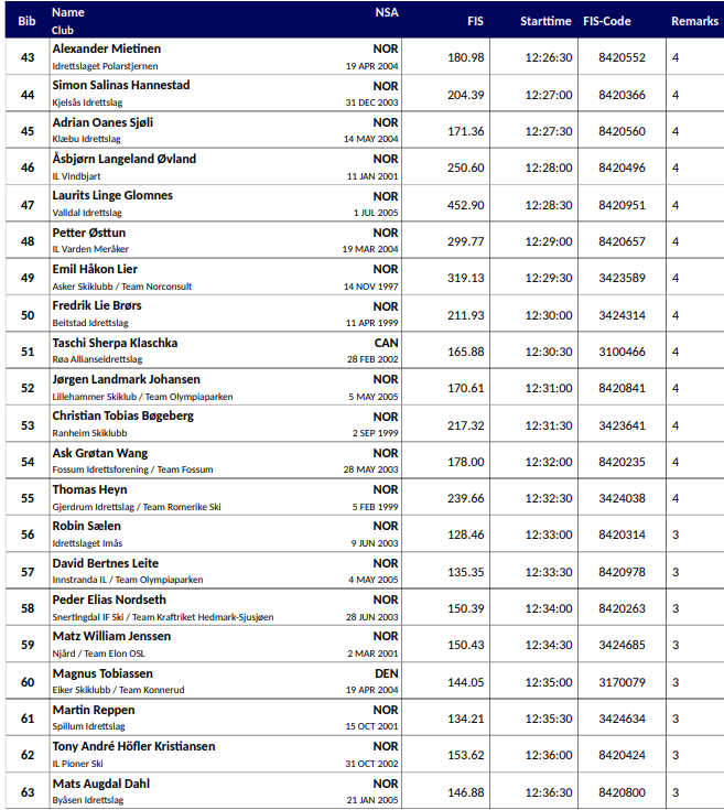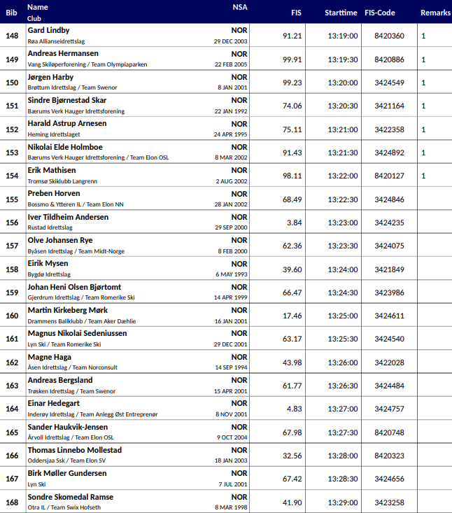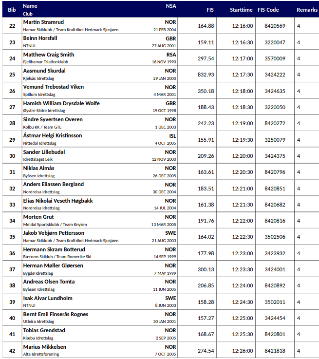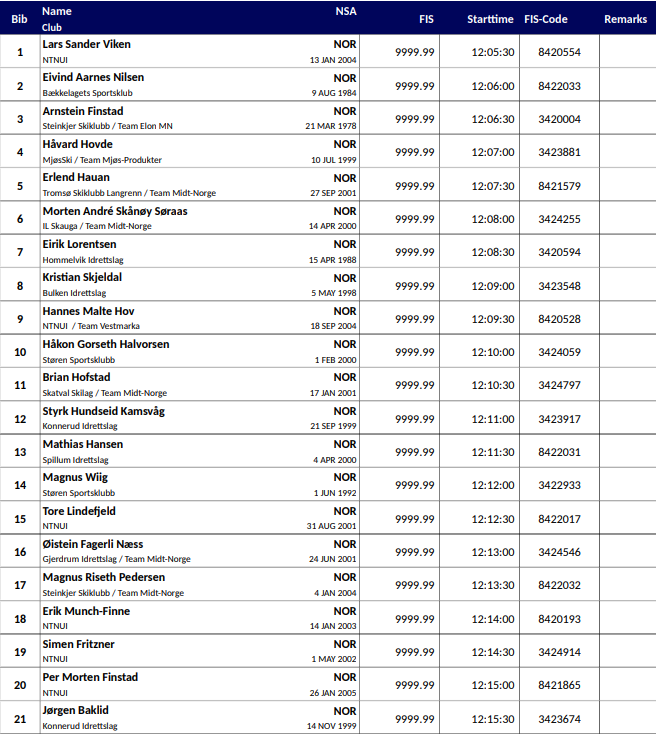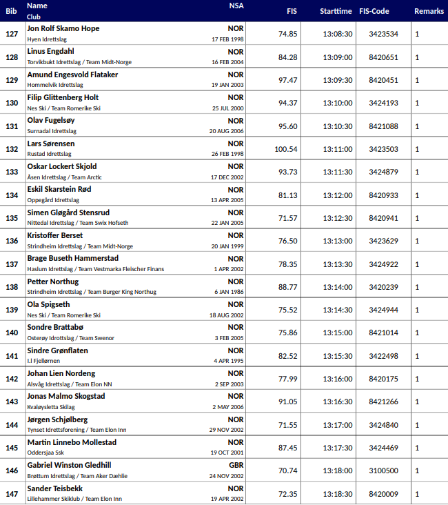 Startlister