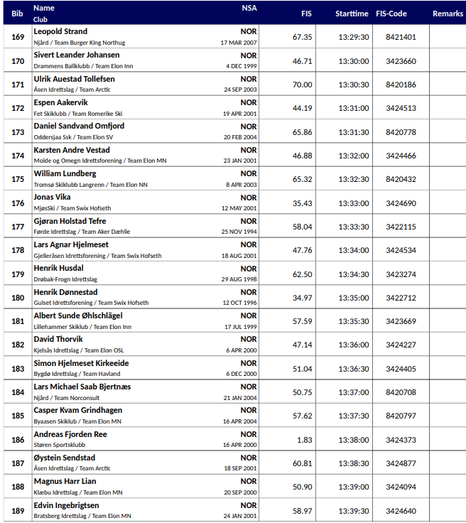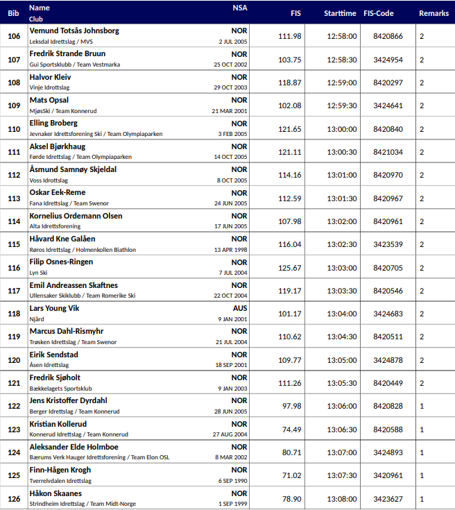 Startlister, resultater og annen informasjon fra 10 km fri menn under Ski NM – del 1 som arrangeres i Steinkjer 15. januar 2026.