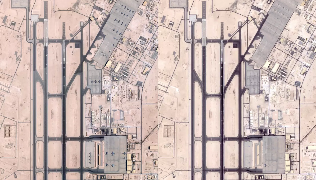 MILITÆRBASE: Satelittbilder fra juni i fjor viser den amerikanske militærbasen Al-Udeid i Qatar fra lufta. Foto: AFP /NTB