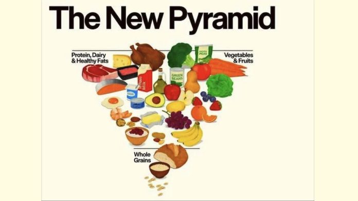 Jeg trodde først den inverterte (omvendte) matpyramiden var en spøk. En plakat lavkarbo-miljøet delte for å gjøre narr av de gamle rådene.