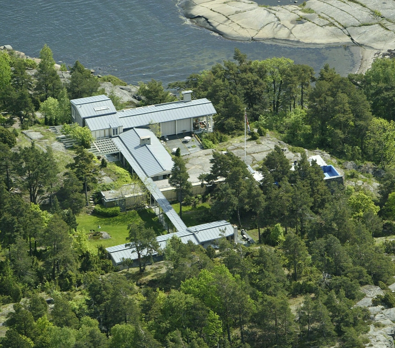 Her er nemlig bebyggelsen langt oppe fra sjøen, slik at de som passerer i båt ikke har innsyn.