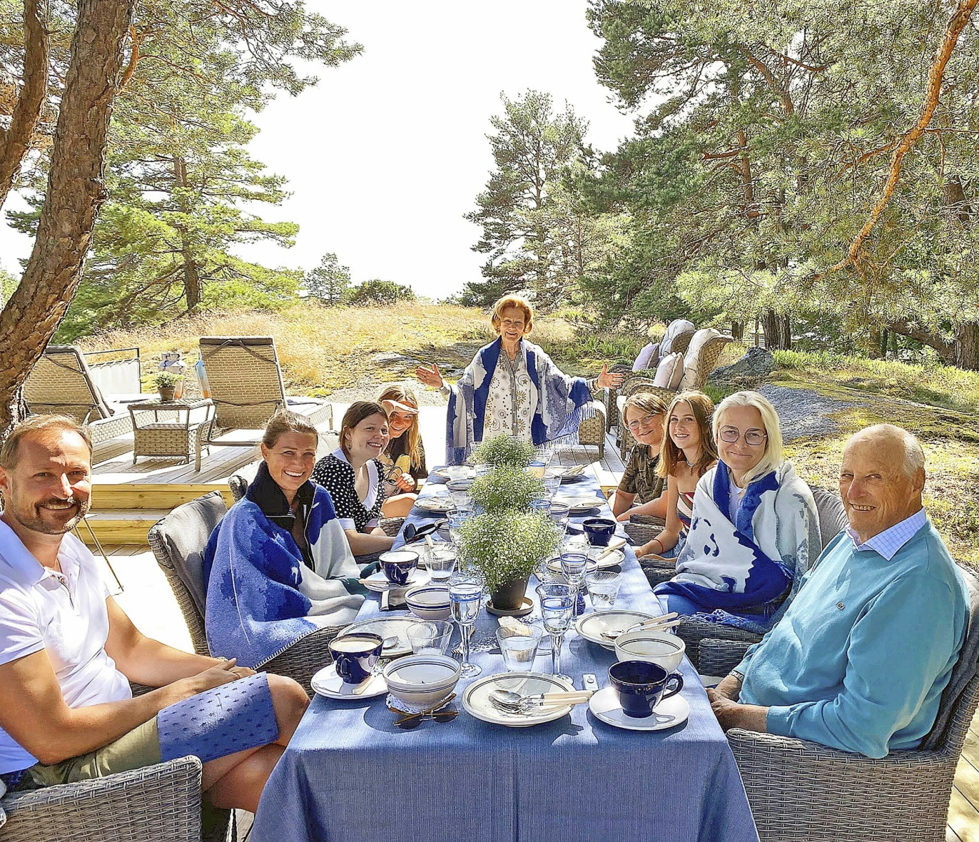 Men det er slett ikke bare familien som trives på magiske Mågerø. Dronningen har gjort det til en tradisjon å invitere til feiring på hytta i anledning sin egen bursdag den 4. juli. Bildene fra slike anledninger trykkes over hele verden.