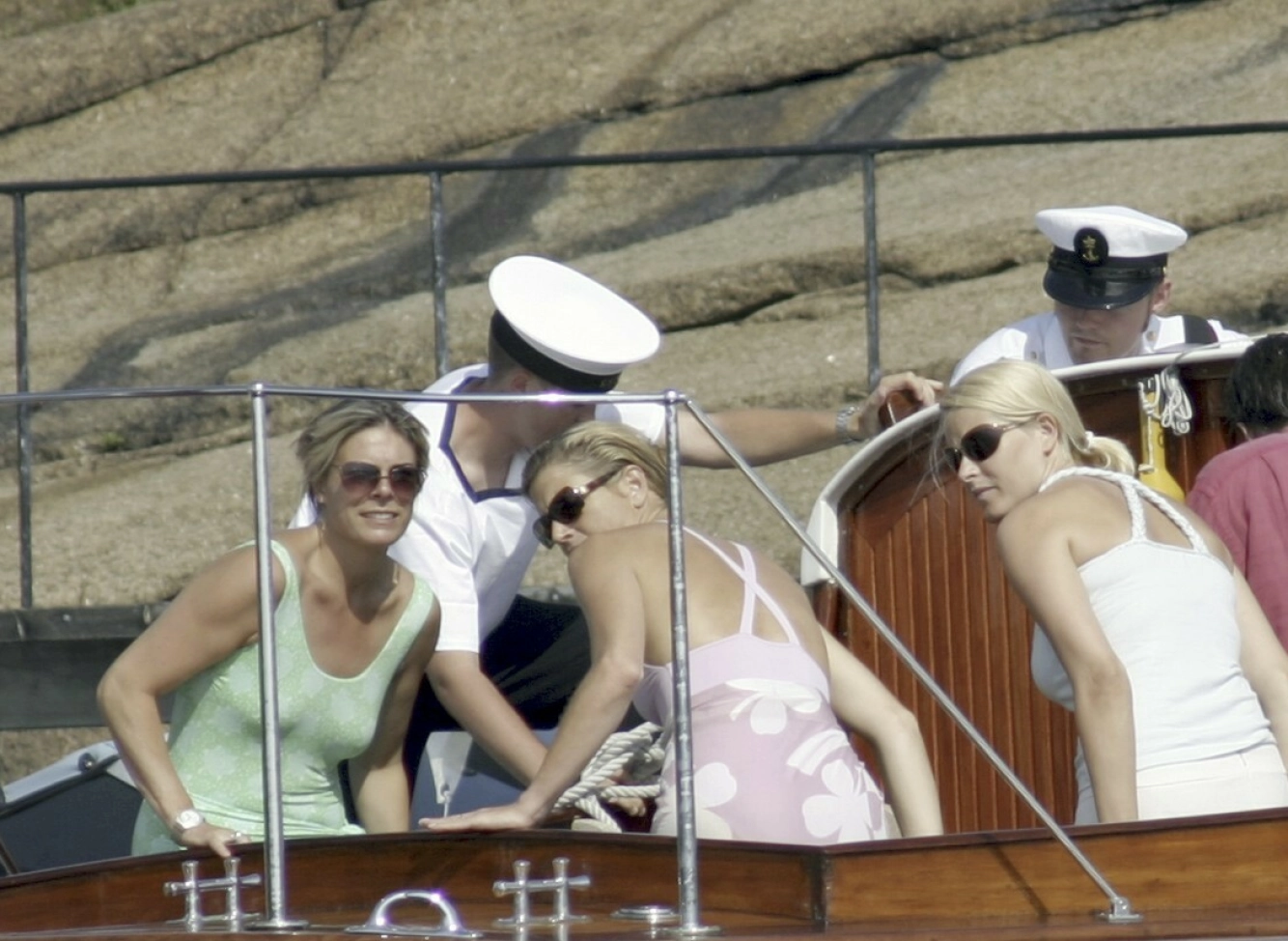 ROYALE VENNINNER: Her setter kronprinsesse Mette-Marit, Nederlands prinsesse Laurentin og dronning Maxima seg i båten «Stjernen» for en rundtur i skjærgården utenfor Mågerø. Foto: Per Gustavsen